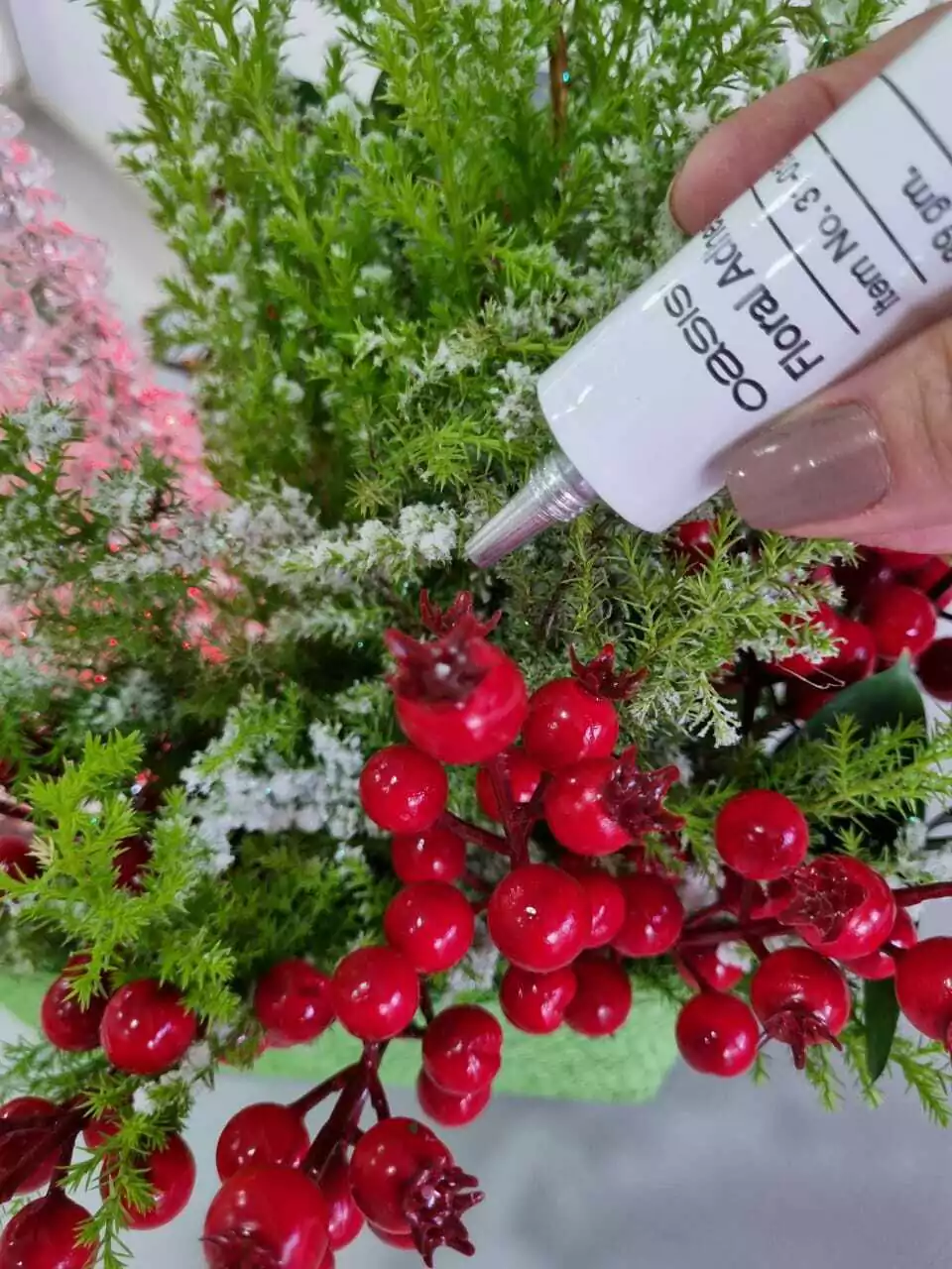 Adesivo líquido de secagem rápida e prova d'água formulado para uso com flores frescas e folhagens;